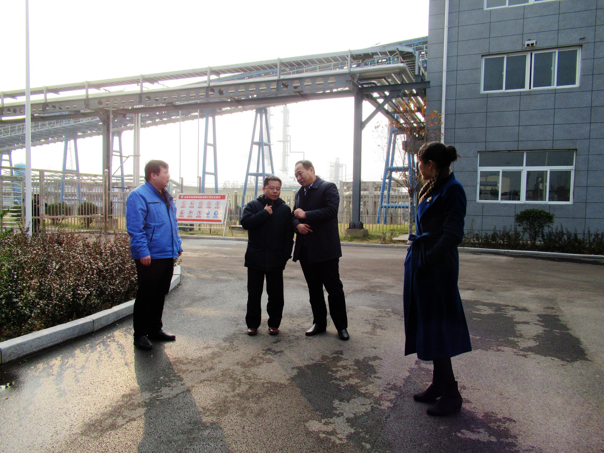 孫洪剛首先參觀了維度公司,認(rèn)真聽取老區(qū)的情況介紹,并對(duì)老區(qū)周邊狀況進(jìn)行了考察。隨后對(duì)中科綠碳科技公司進(jìn)行了參觀,聽取了DMF裝置試驗(yàn)、成果鑒定、新工藝節(jié)能減排和中試平臺(tái)運(yùn)行等情況。